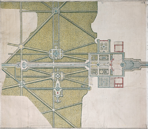 Dieser Gartenplan des französischen Garteningenieurs Dominique Girard für Schloß Nymphenburg war für die Ausführung grundlegend und lag spätestens um 1720 vor: Pagodenburg (1716–1719) und Badenburg (1718–1721) sind bereits eingezeichnet, die Magdalenenklause (1725–1728) fehlt noch. Girard, zuvor Fontainier im Dienst von Ludwig XIV., war von 1715 bis zu seinem Tod 1738 am bayerischen Hof tätig. Der Plan zeigt den bis um 1804 bestehenden Boskettgarten mit den diagonalen Alleen, dem Kanalsystem, den Brunnenanlagen und Parterres.